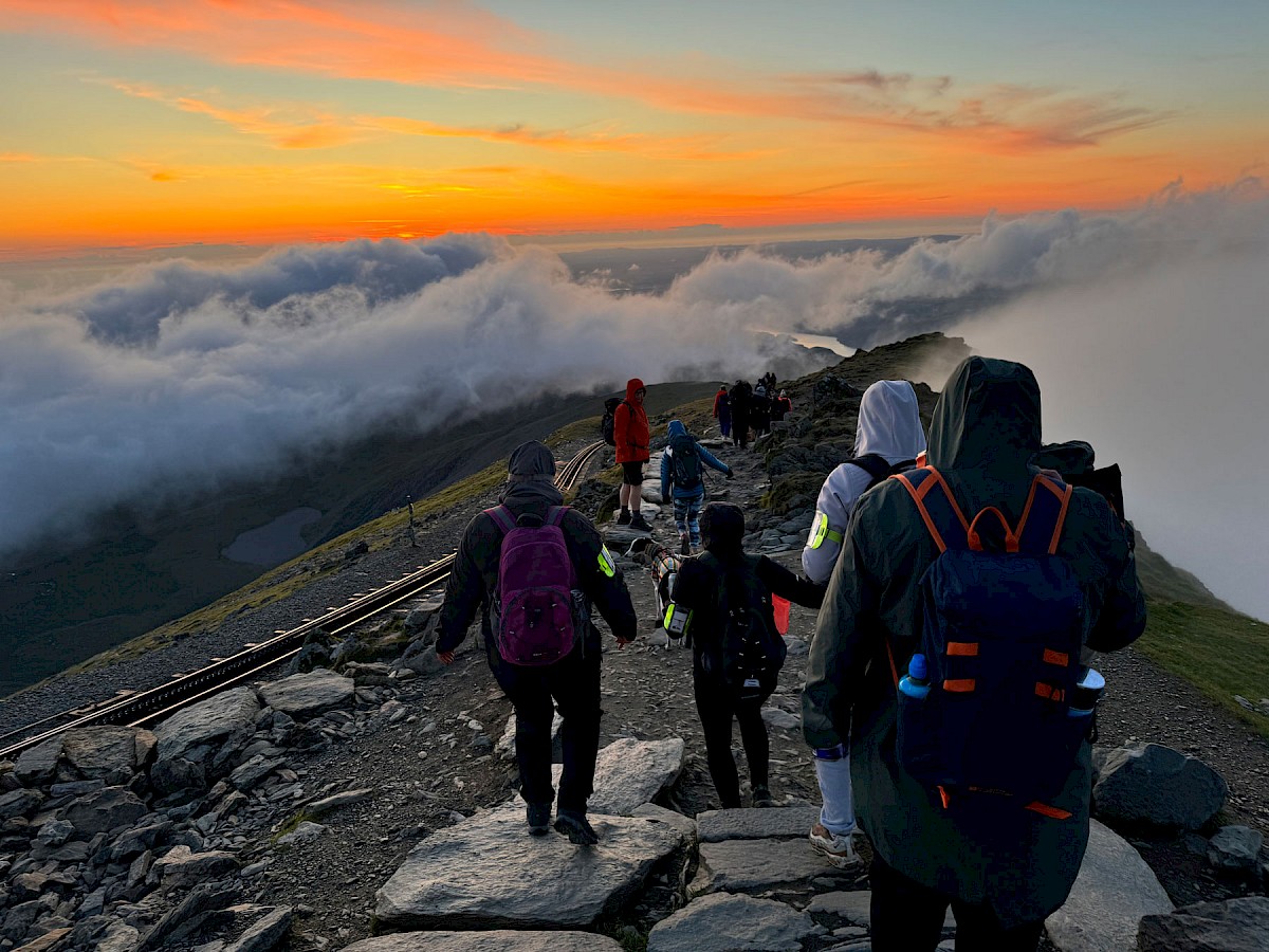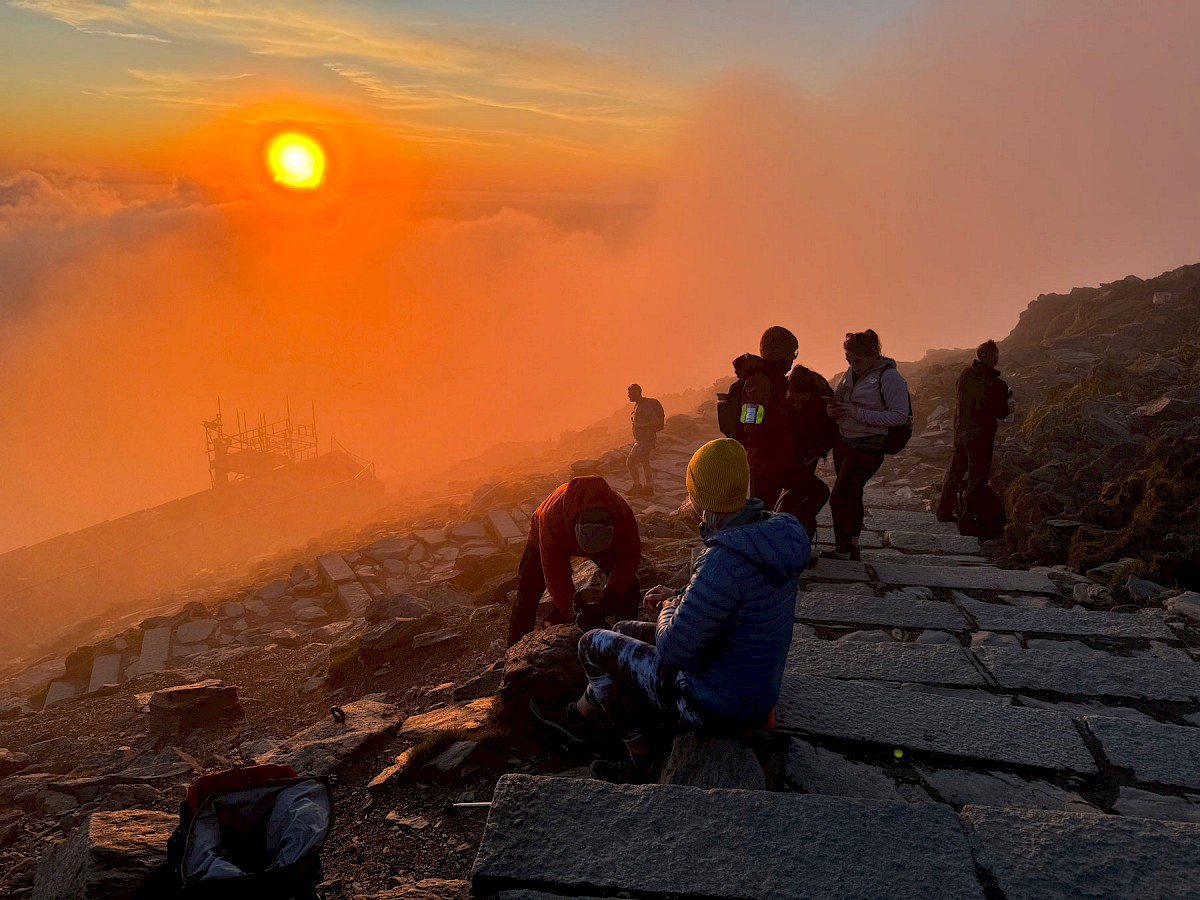 Cafwyd golygfeydd anhygoel ar y daith machlud yr haul ar Yr Wyddfa a wnaeth y digwyddiad elusennol yma’n un arbennig iawn i’r grŵp.
