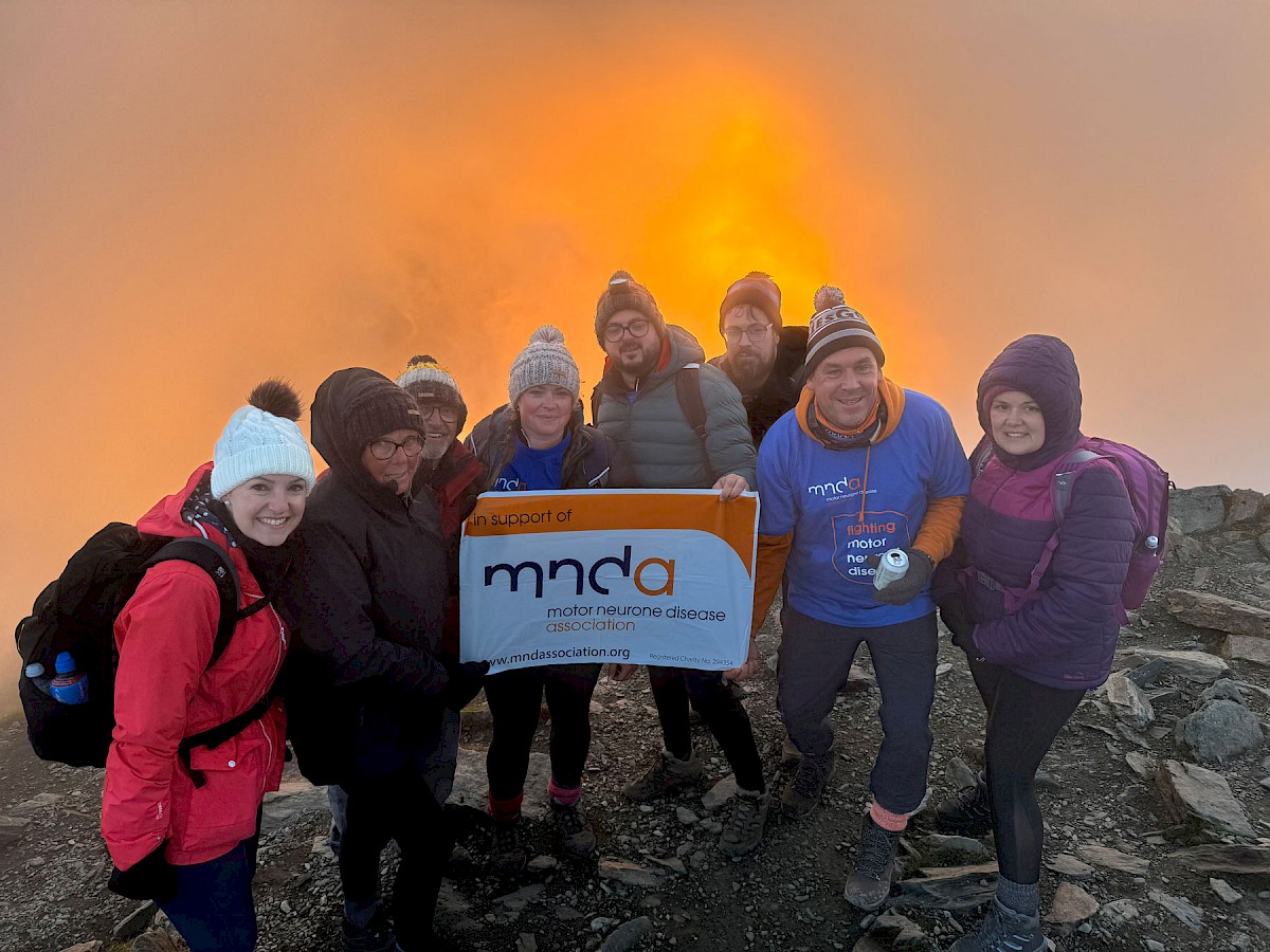 A group of friends completed a sunrise walk on Yr Wyddfa / Snowdon up the Llanberis path and down the Watkin path for the MND charity.
